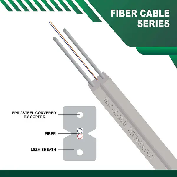 TMT GLOBAL  provides high-strength optical fiber cables for use in various industrial, indoor, and outdoor applications. Offering unique properties and benefits for different types of use, our communications optical fiber cable products can easily meet complex application requirements and specifications. optical fiber cable  FTTH ,FTTX , indoor/outdoor SM/MM, OS1,OS2 ,OM1,OM2,OM3,OM4 is compliant with ISO/IEC and ANSI/TIA Standard.2 Core FTTH fiber optic Drop cable G 657/A1/A2 single mode